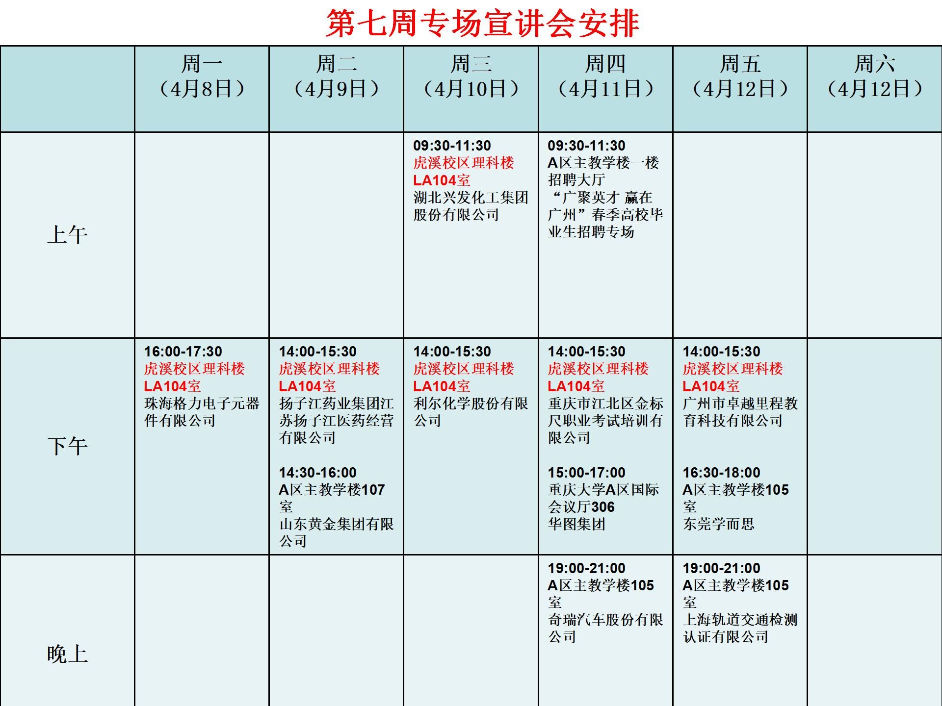 第七周专场宣讲会安排