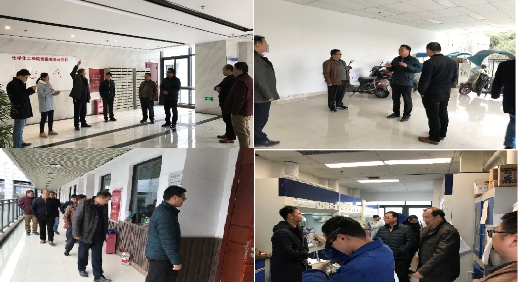 本次安全检查先针对寒假期间重庆市消防大队对学院进行消防检查时发现的问题进行现场查看并讨论解决办法,然后走访实验室进行安全检查。检查人员先到理科楼一楼东端平台查看电动车充电现象,查看之后,刘书记表示,电动车在此充电确实存在安全隐患,要求学院办公室立即报告物管部门,及时消除安全隐患。接着,检查组一行走访了学院科研室,对实验室的药品管理,通风橱等仪器设备使用状况,用电规范,气瓶管理,废物处置等方面进行了仔细检查,并向师生发出新学期实验室安全提醒。