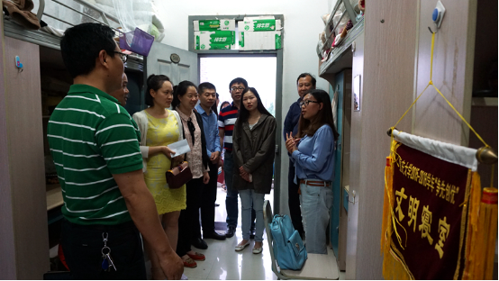 领导前往虎溪校区兰园七栋和梅园六栋走访2014级本科毕业生宿舍,学院党委书记刘仁龙,党委副书记胡小华,副院长李泽全、董立春、胡宝山,各年级辅导员等其他老师一同参与。