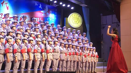 比赛正式开始,在男、女领读员饱含情感的朗诵下,《七律长征》拉开帷幕。全体师生目光如炬,精神饱满,坚定激昂的歌声响彻会场,伴随着气势磅礴的钢琴伴奏,红军长征中的艰难险阻在歌声里娓娓道来。“飞夺泸定桥,巧渡金沙江”,师生们铿锵有力的歌声是革命终将胜利的信念,气势恢宏的歌曲最终赢得全场观众热烈的掌声。