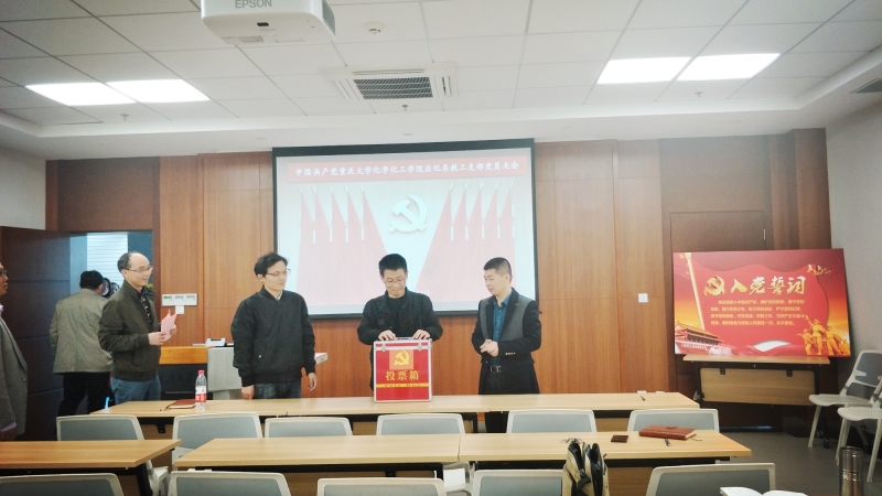 化学系教工党支部、应化系教工党支部、化工系教工党支部、制药系教工党支部、实验中心教工党支部、办公室教工党支部分别在虎溪校区理科楼LA104、LA105、LA106、LA107、LA108、LA109召开党员大会进行换届选举。学院全体教职工党员分别参加了自己所在支部的党员大会。