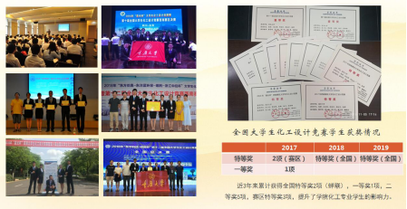 着眼学生素质拓展,做青年之友。在校团委的支持下,依托树声前锋杯平台,开展树声前锋杯化学实验竞赛、化工设计竞赛、制药工程设计竞赛,为青年学生提供科普和锻炼平台,同时为全国赛输送优秀选手和队伍,3年来学生在“卓越杯”大学生化学新实验竞赛中累计获得一等奖3项,二等奖3项,三等奖10项,2019年首次全国赛获得二等奖,成为学生参与度与好评度最高的专业竞赛之一。全国大学生化工设计竞赛更是硕果累累,近三年累计获得全国特等奖2项(蝉联),一等奖1项,二等奖5项,赛区特等奖3项,提升了学院化工专业学生的影响力,真正达到了以赛促教、以赛促学的目的。