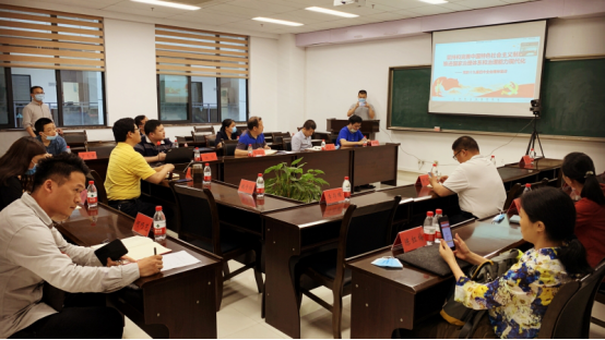 会议的第一阶段为深入学习领会党的第十九届四中全会精神学习会,主讲人为马克思主义学院杨华副教授。杨华老师从十九届三种全会以来的工作到《决定》的起草再到《决定》结构,系统而全面地阐述了全会的基本情况;从何为初心和使命,引出中国共产党人的初心和使命,就是为中国人民谋幸福,为中华民族谋复兴;从阐释“制”“度”的含义为出发点,形象生动地讲解了充分认识坚持和完善中国特色社会主义制度、推进国家治理体系和治理能力现代化的重要意义;以哲学三大问题引出国家治理体系“好在哪、特在哪、根在哪”。