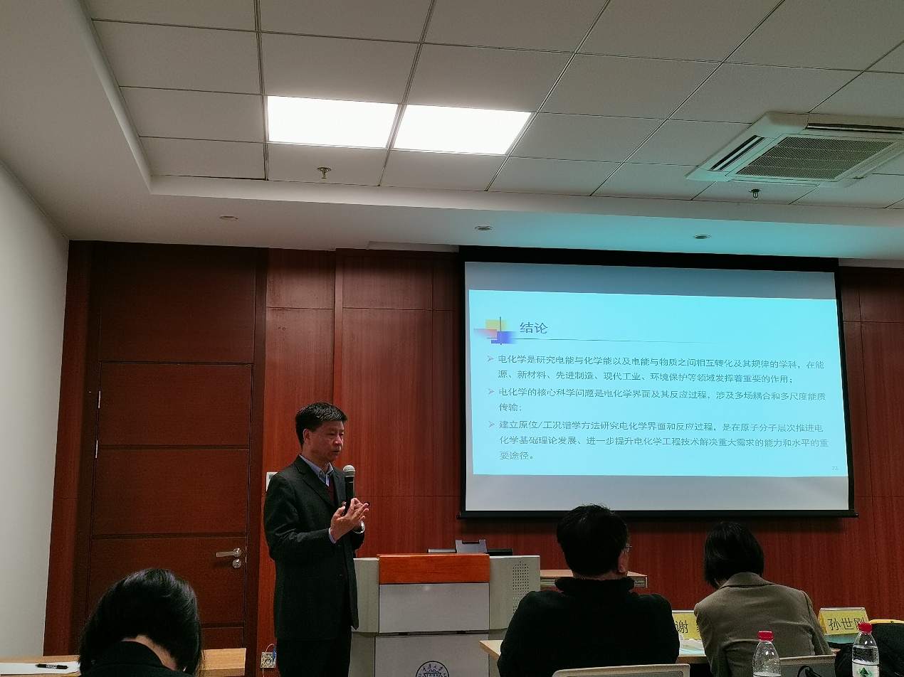 开幕式后,论坛进行了为期一天的主题报告。会议上午,厦门大学孙世刚教授作题为《电化学科学和工程及其原子分子层次研究》的报告,华东理工大学刘洪来教授作题为《超级电容器电极材料设计和电解质筛选》的报告,中国科学院化学研究所李永舫教授作题为《聚合物太阳电池光伏材料最新研究进展》的报告,北京科技大学王新东教授作题为《氢能源物理化学》的报告。会议下午,中国科学技术大学谢毅教授作题为《激子调控优化光催化氧活化》的报告,中国科学院长春应用化学研究所邢巍研究员作题为《PEM氢电转换体系催化材料研究及其系统应用》的报告。