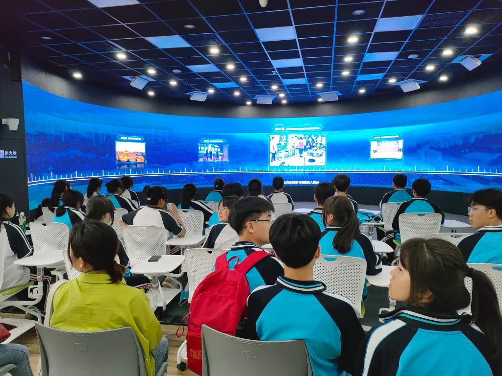 在交叉创新中心,带领他们参观了全景教室、汽车实验室、机器人实验室等,近距离接触先进的科学技术成果,感受科技创新的魅力。