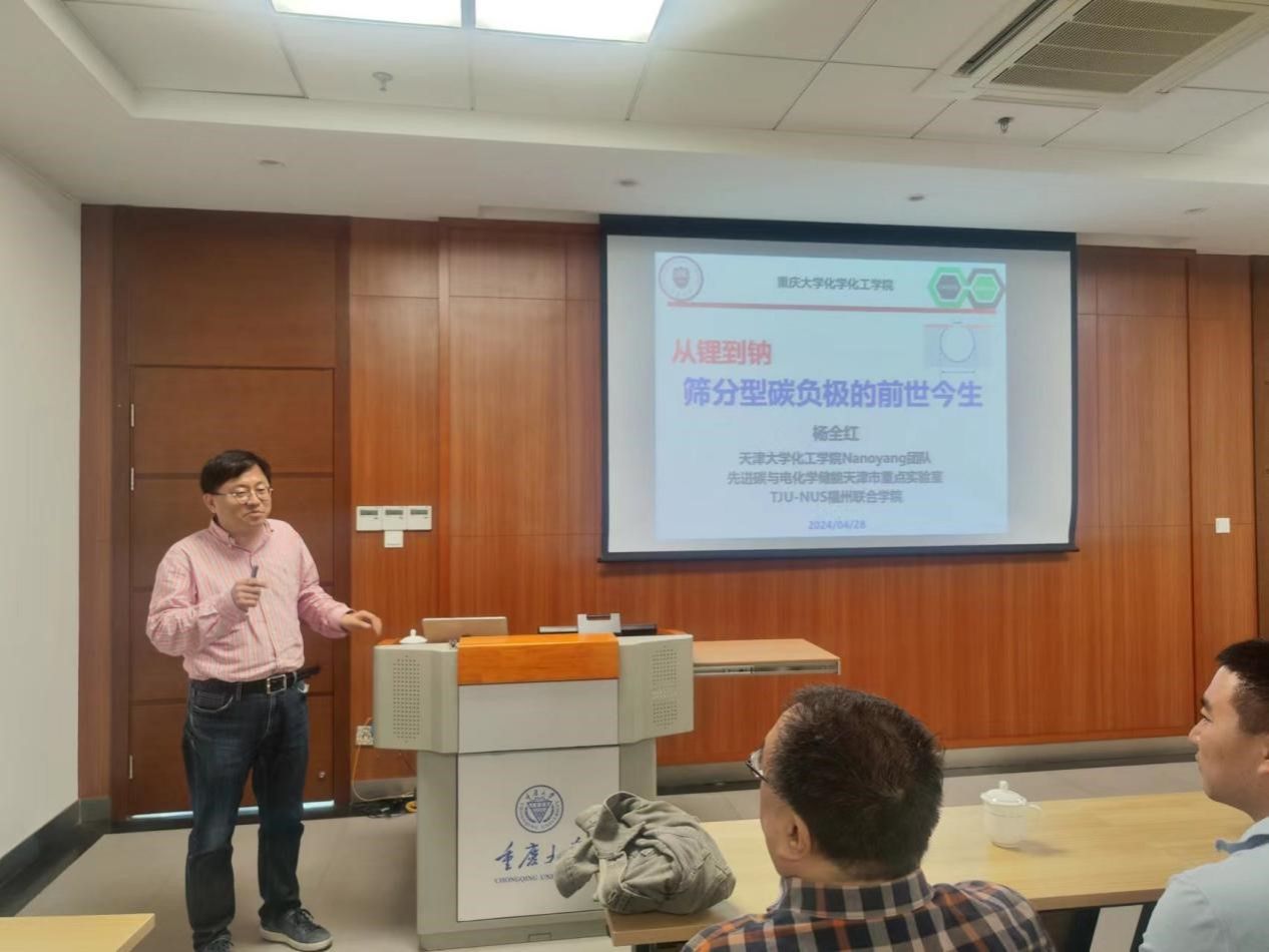 虎溪校区LA108,天津大学化工学院杨全红教授应邀开展了主题为“从锂到钠——筛分型碳负极的前世今生”的学术讲座。本次讲座由日本性爱