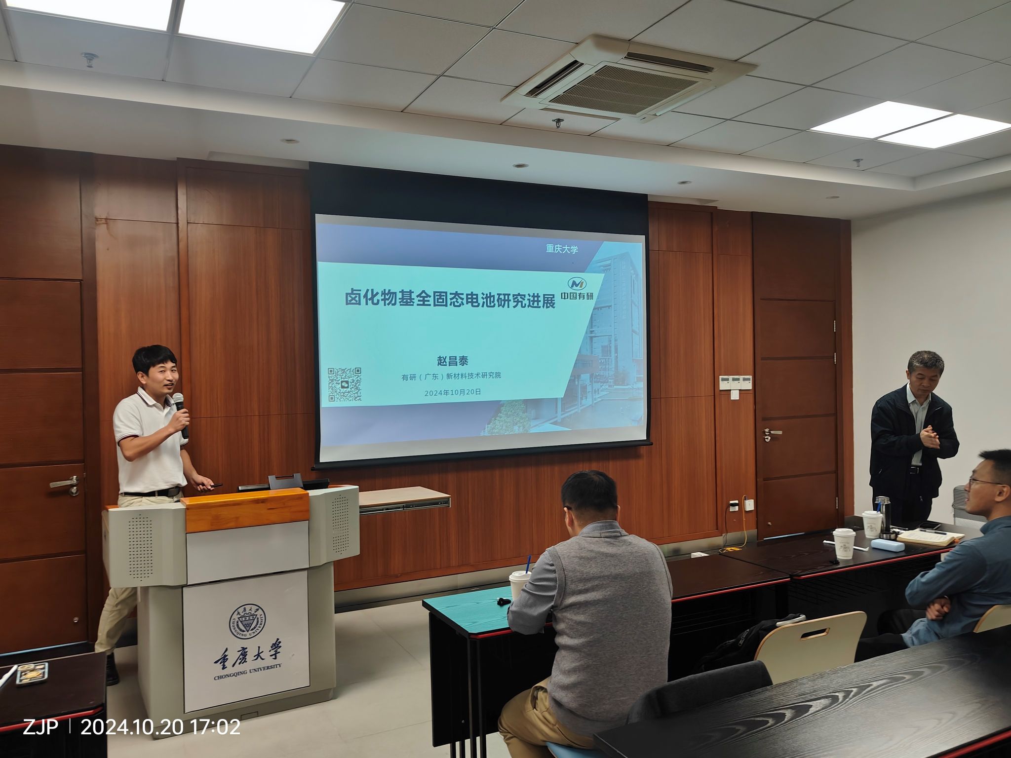 进行了一场题为“卤化物基高比能全固态电池研究进展”的学术讲座,并与我院教师和学生进行了深入交流。讲座由胡宝山副院长主持,学院韩晓彤副教授、梁红梅老师等老师及相关专业学生参加了本次讲座。