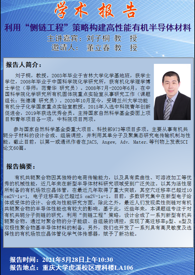 利用“侧链工程”策略构建高性能有机半导体材料 刘子桐教授