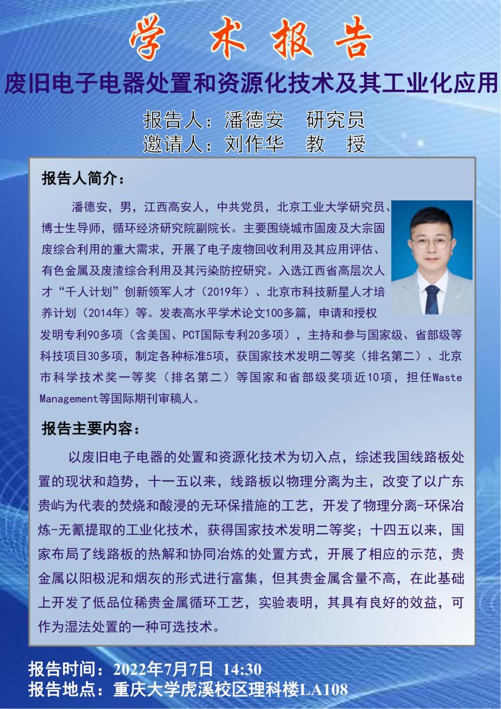 潘德安研究员 废旧电子电器处置和资源化技术及其工业化应用
