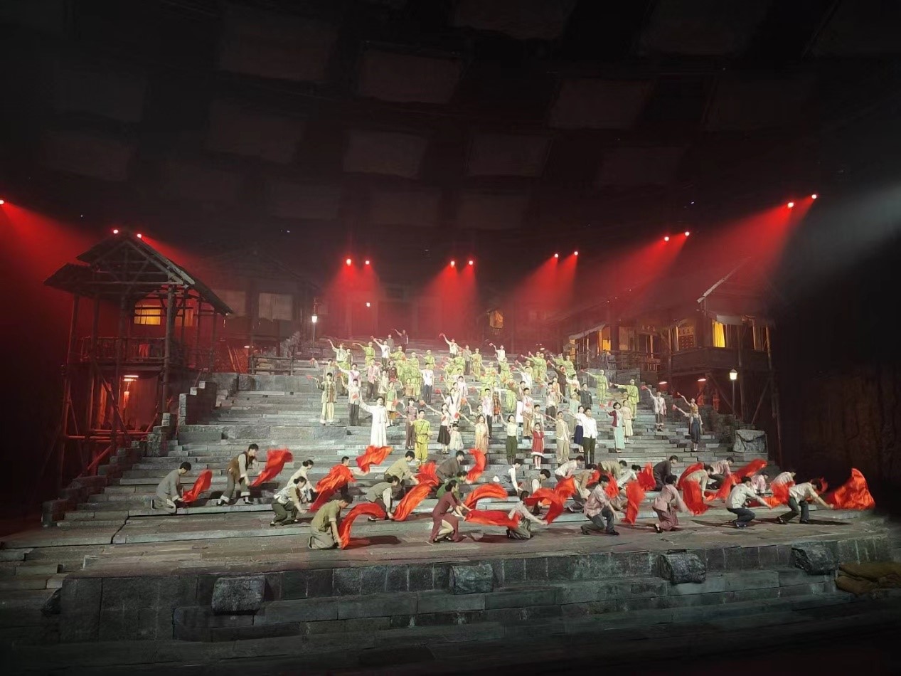 “不忘奋斗路、启航新征程”今天正值中国共产党成立101周年,演出结束后,演职人员和全场观众挥动五星红旗,高唱《唱支山歌给党听》、《没有共产党就没有新中国》,共同祝福我们伟大的党。