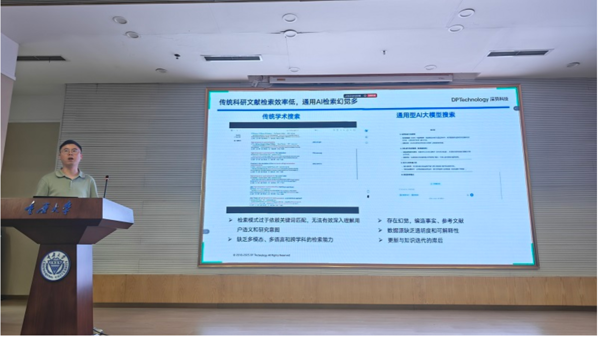 为提升党员科研素养,活动特邀深势科技高级解决方案架构师张亚斌作《为AI for Science时代打造的科学求知引擎——科学导航解决方案》专题讲座,探讨人工智能如何驱动科研创新,为师生提供更高效的学术支持。