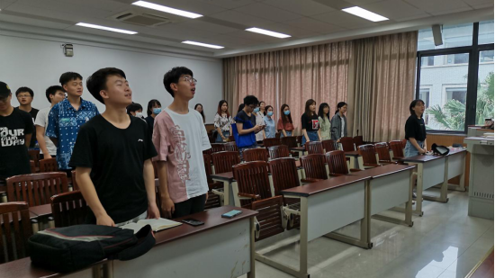 本次主题团日活动旨在深⼊学习全国“两会”精神、党的⼗九⼤精神及习近平总书记给北京⼤学援鄂医疗队全体“90”后党员回信精神。本次团日活动共有四个环节,第一部分是由团支书致开幕词,全体同学齐唱团歌。活动在热烈、庄严的歌声中渐入佳境。