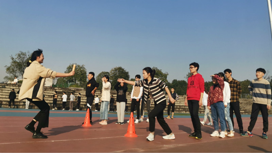 接下来主持人宣布趣味接力赛正式开始,将现场的气氛推向高潮。伴随着发令枪响,四组参赛者奋力拼搏、步伐矫健。接力赛,是团结与默契的比拼,一次次的超越,掀起比赛现场一阵阵的欢呼与呐喊。各组队员们在跑道上释放的冲劲,被一根小小的接力棒连接,为这个寒冷的冬日灌注了几抹青春的朝气与活力。