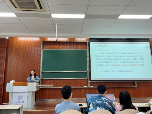 接下来,考取广西省选调生的农伊倩分享了选调生考试的经验并对相关内容进行了介绍。通过农伊倩的讲解,同学们对选调生考试有了明确的界定与认识。农伊倩学姐的分享增长了同学们的见识,拓宽了同学们的就业思路。