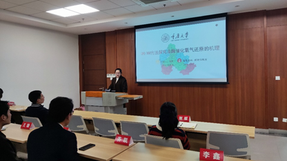博士研究生李鑫以“QM/MM方法探究漆酶催化氧气还原的机理”为主题,详细讲述了她的研究过程。逻辑缜密,有条有理,向同学们展现了研究者的清晰思路,同时,一些有趣的研究焦点也吸引了大家的目光,引发了同学们的热情提问。