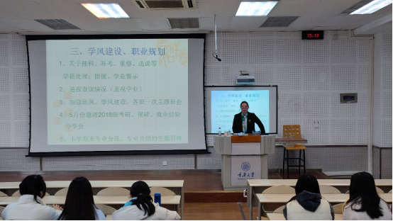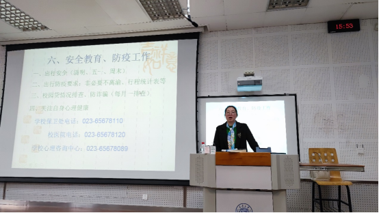 于虎溪校区D1125召开2020级年级大会,辅导员伍丽及全体2020级学生出席了本次会议。
