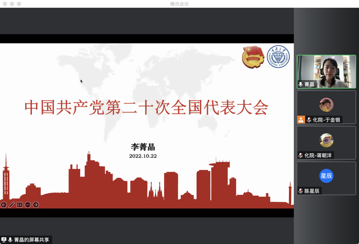 开班典礼结束后,继续开展了本次团校的第一次理论课程,由现任校团委组织部部长、学生二课中心主任李菁晶老师讲授,主题为“喜迎二十大,共筑中国梦”。课程中老师带领同学们回顾了从一大到二十大的历史进程,通过“一个中心任务”“第一要务”“‘两步走’战略安排”“归根到底是两个‘行’”“三个务必”“十年来经历了三件大事”“五项重大原则”“五个必由之路”“六个必须坚持”九个数字速读了二十大报告,借用七组数据感悟十年的非凡成就,并且分享了习近平总书记的青年寄语——“青年强,则国家强。当代中国青年生逢其时,施展才干的舞台无比广阔,实现梦想的前景无比光明。”
