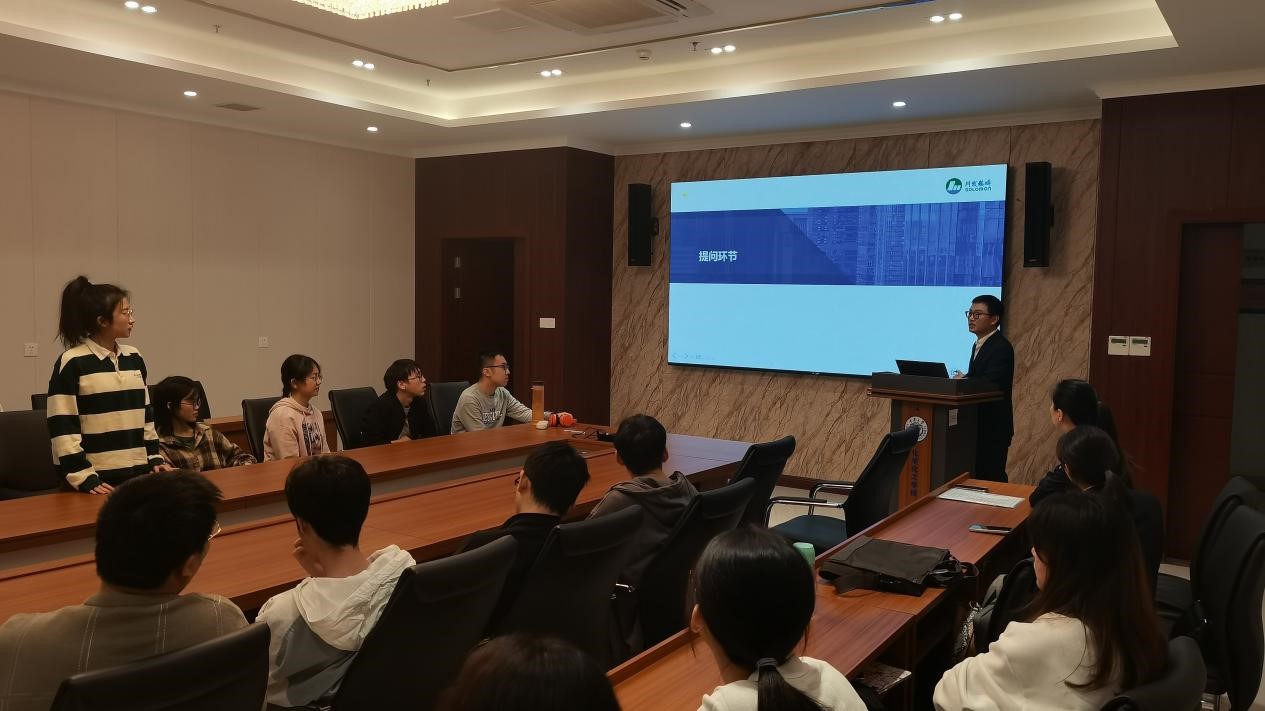 最后,曹宇学长提出自己的人生感悟:“学,思,行,悟”,并以学习、工作两方面向同学们解释每个字的含义,希望同学尽早做好学业规划,明确未来人生目标,并以之实践。他认真解答了同学们对于就业与升学的疑问,同学们收获颇丰。