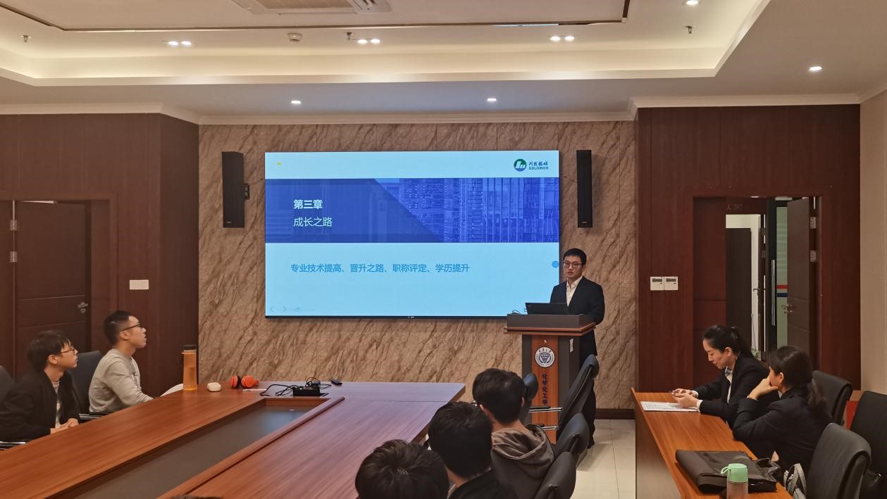 随后曹宇学长从学习经历、毕业前所学、从业后所学以及对读研的看法四个方面分享了自己的学习经验和看法。接着,他介绍了自己的就业经历,同时分享了自己对从事化工职业的看法,为同学们给出了择业建议。他分析了当下就业环境和行业对人才的需求,使同学们明白化工企业工作的前景与挑战。