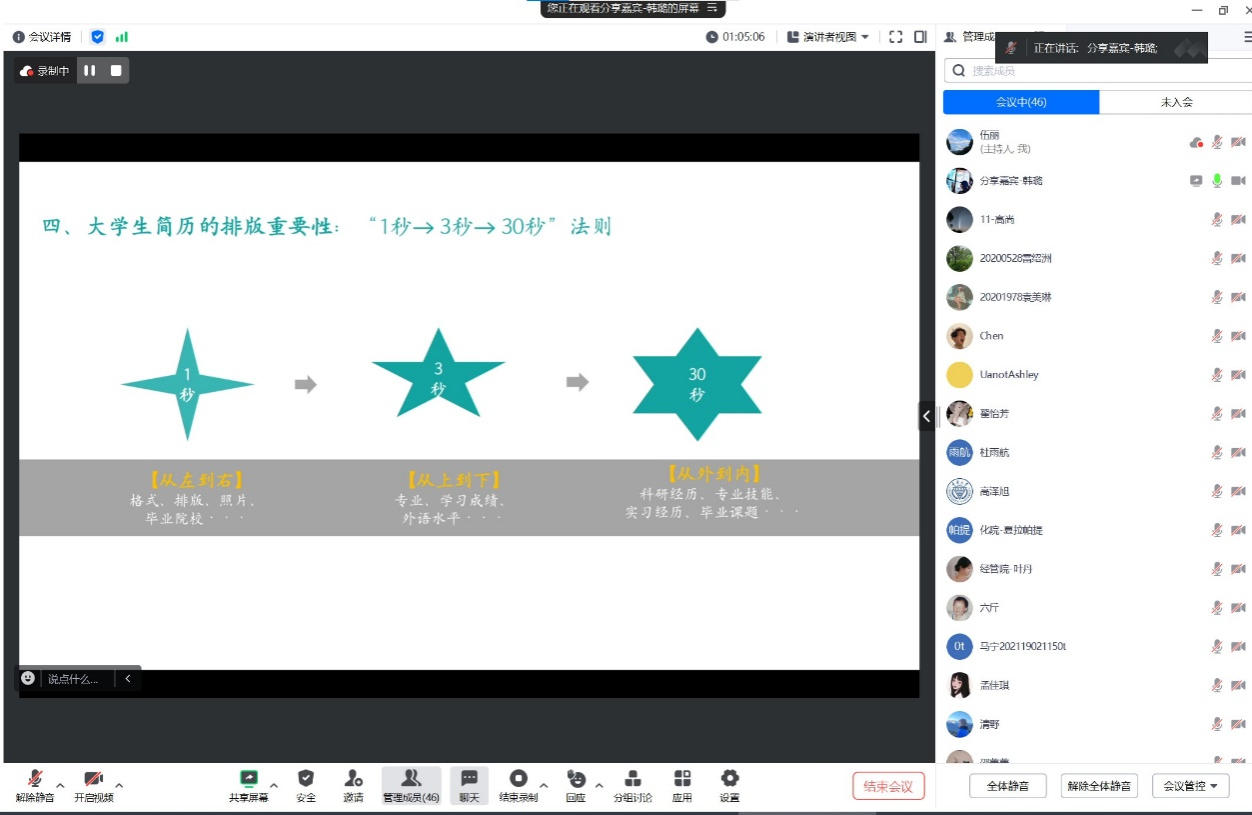 承办,针对大学生简历设计误区及设计细节的主题讲座在腾讯会议线上召开。讲座由日本性爱