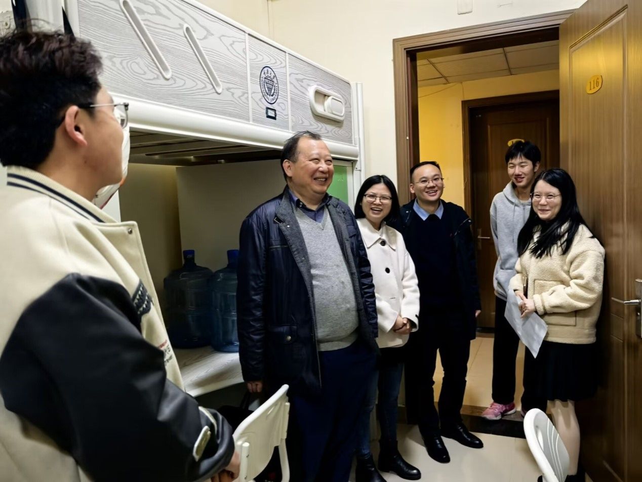 党委副书记李泽全带领辅导员团队深入走访学生宿舍,亲切慰问同学们,送上学院的关怀与温暖,并对宿舍内存在的安全隐患进行排查。